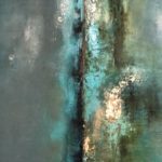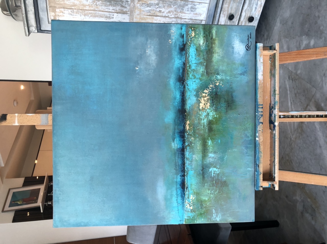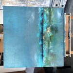 Turquiose abstract seascape with texture and gold leaf accents