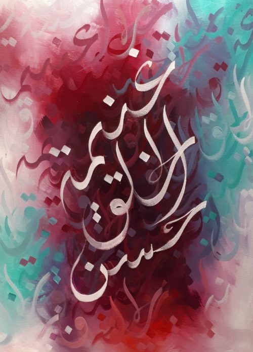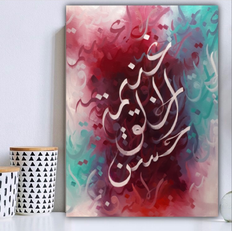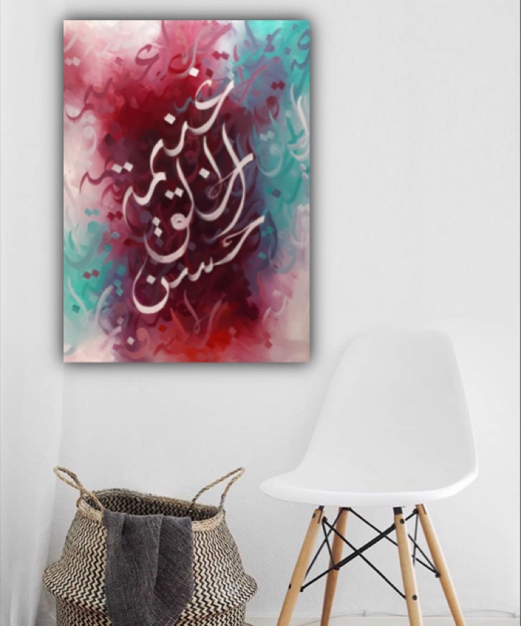 It is arabic qoute talking about manners with colorful shades حسن الخلق غنيمة