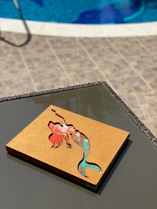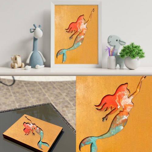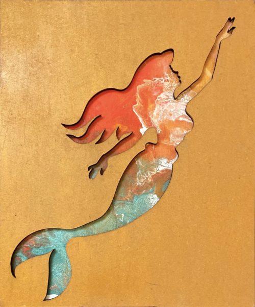 Mermaid Silhouette: mixed media, MDF wood over the acrylic hand-painted canvas
