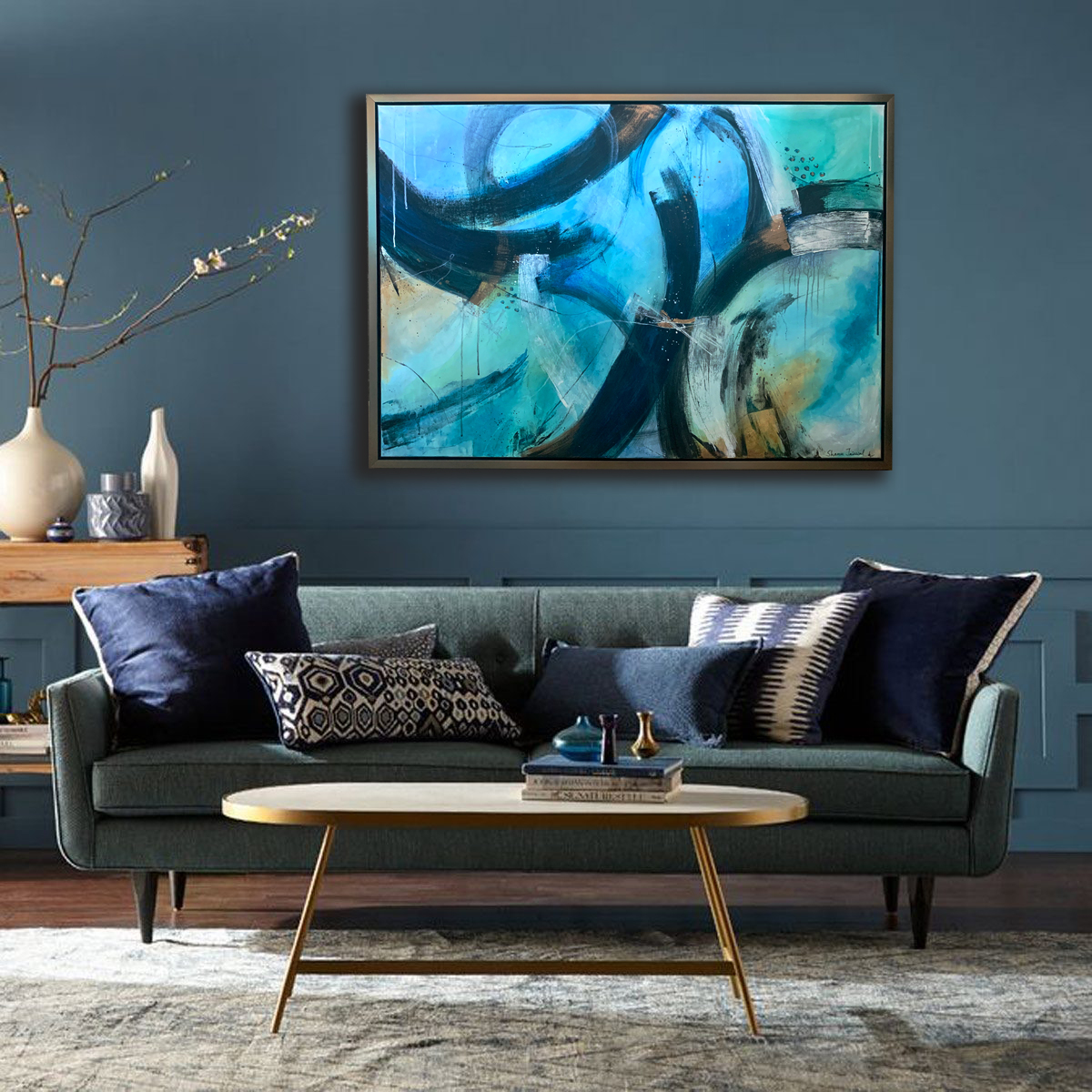 This artwork has strokes of blues and black swinging with each other like ever changing moods of a human nature !