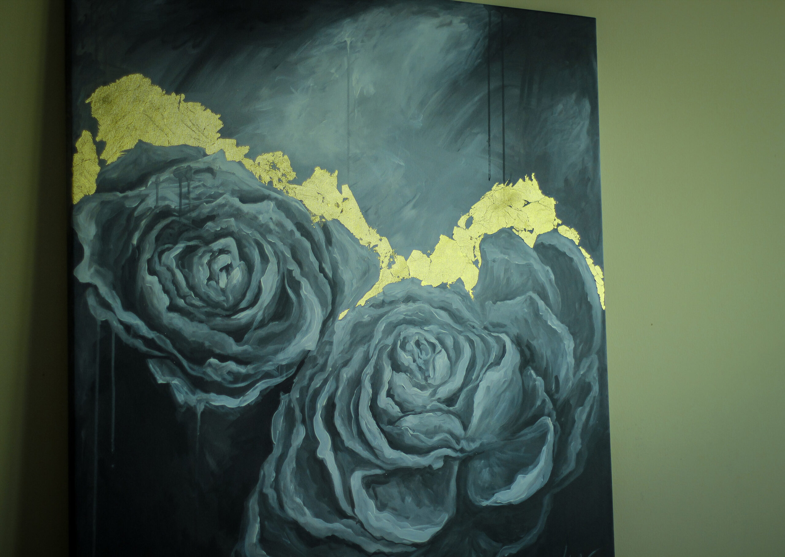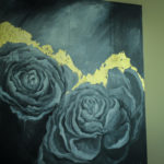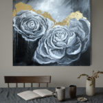 Black and white painting, decorated with golden leaf can become a perfect detail for any color interior. Contrast of white and black with glancing gold will attract all the attention, as you can't stop looking at it from different angles.