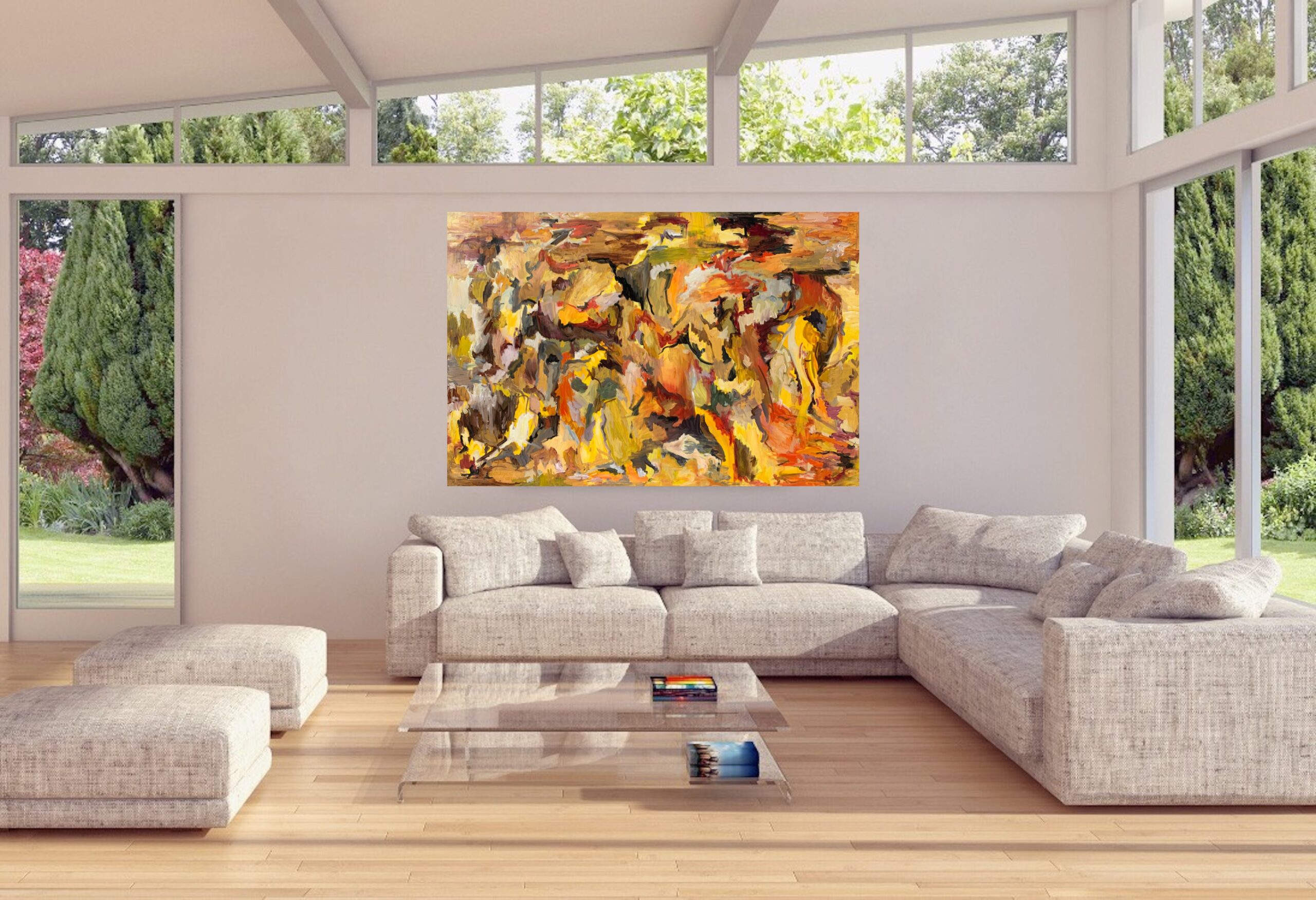 This is an expressionistic abstract painting which is part of the Fragmented Memory series. I made it in September 2020. The medium is oil on canvas of size 47x71 inches (120x180 cm). I have signed it on the front. The stretched canvas is staple free sides, wired on the back and with no need for framing. It's ready to hang.