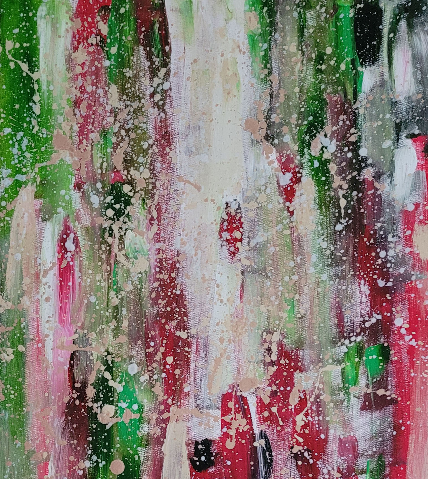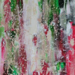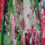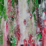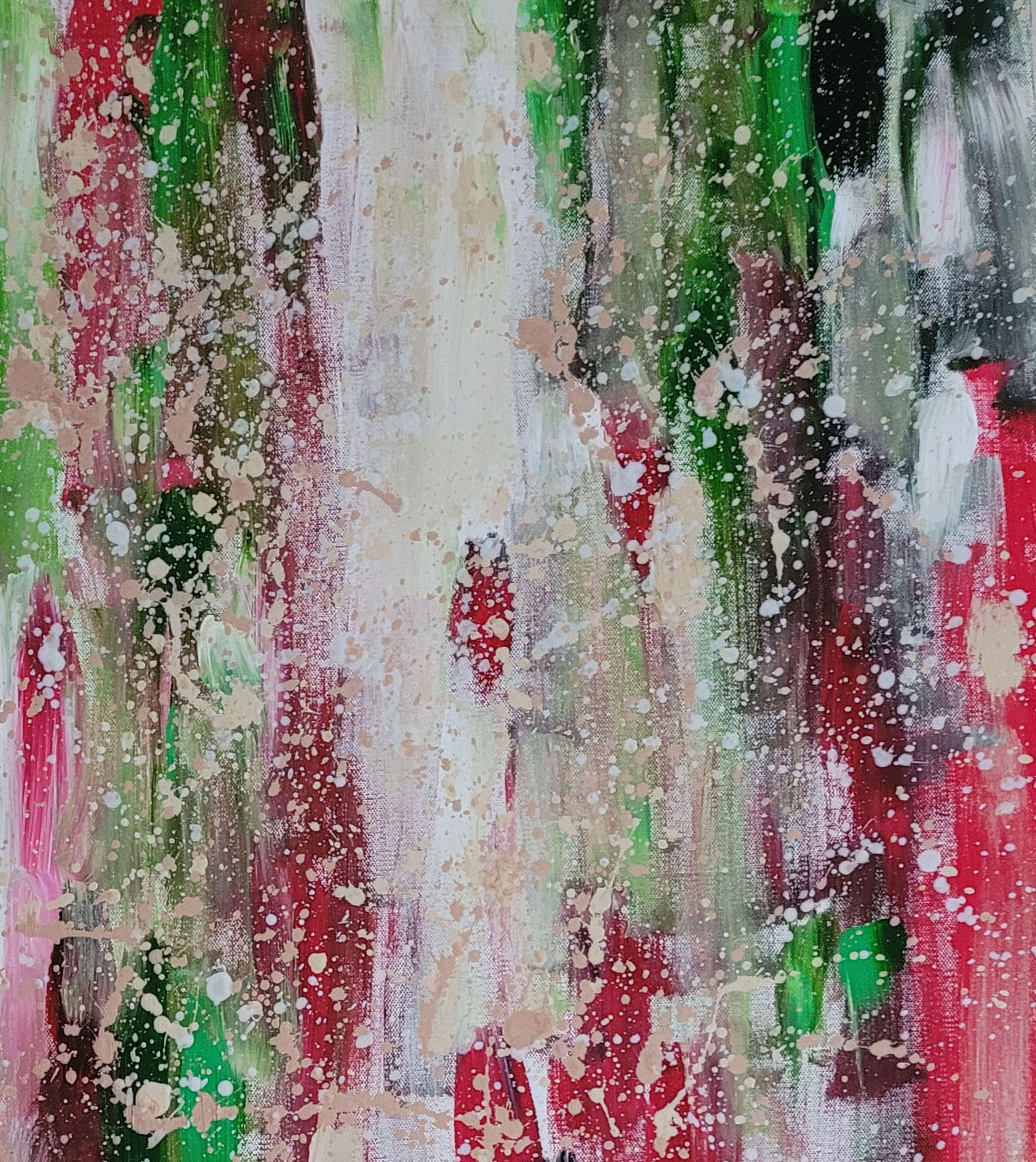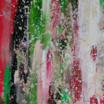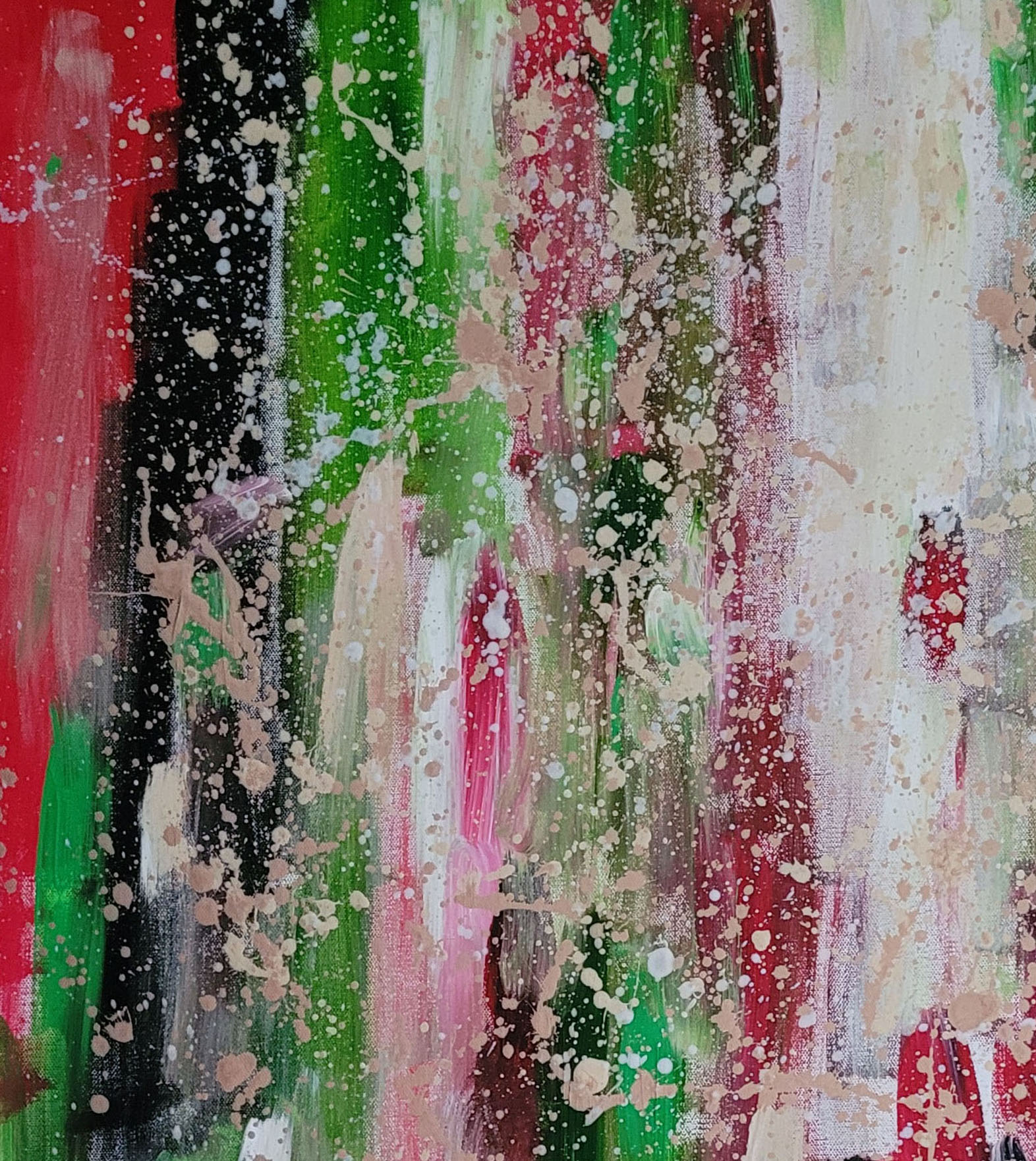Hand painted acrylics on canvas. The colors of Palestine flag. red, Green, Black and white with splashes of gold.