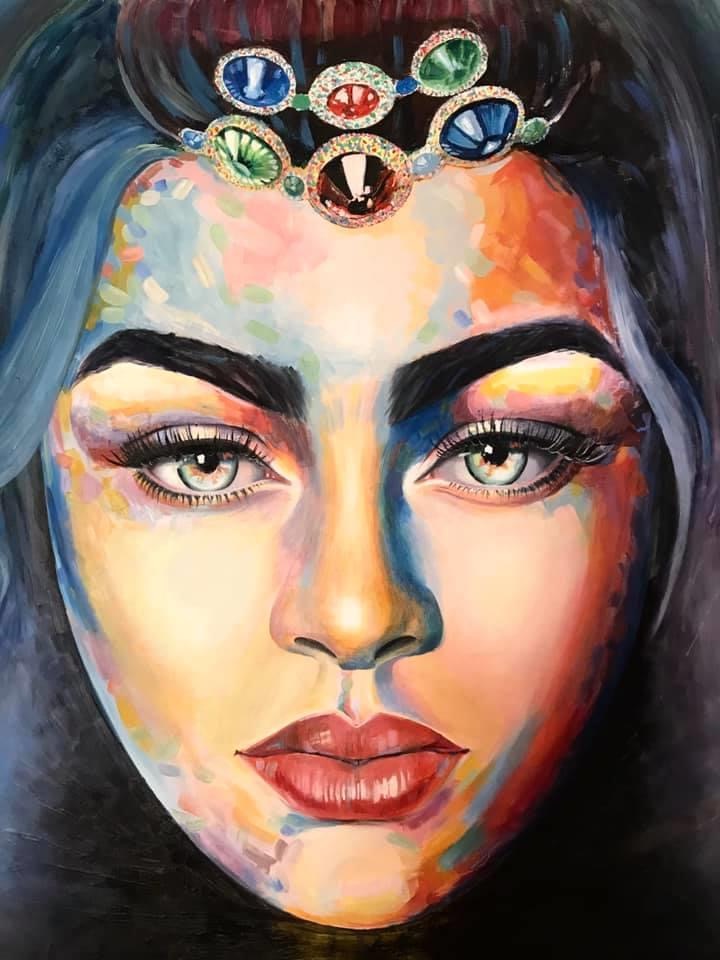 Sea waves crashed with their Turquoise color which reflected in her eyes to express beauty,love and passion of life . The hard stones on her head are shining to reflect her power .. the power of woman .. as .. she is the Queen of oceans