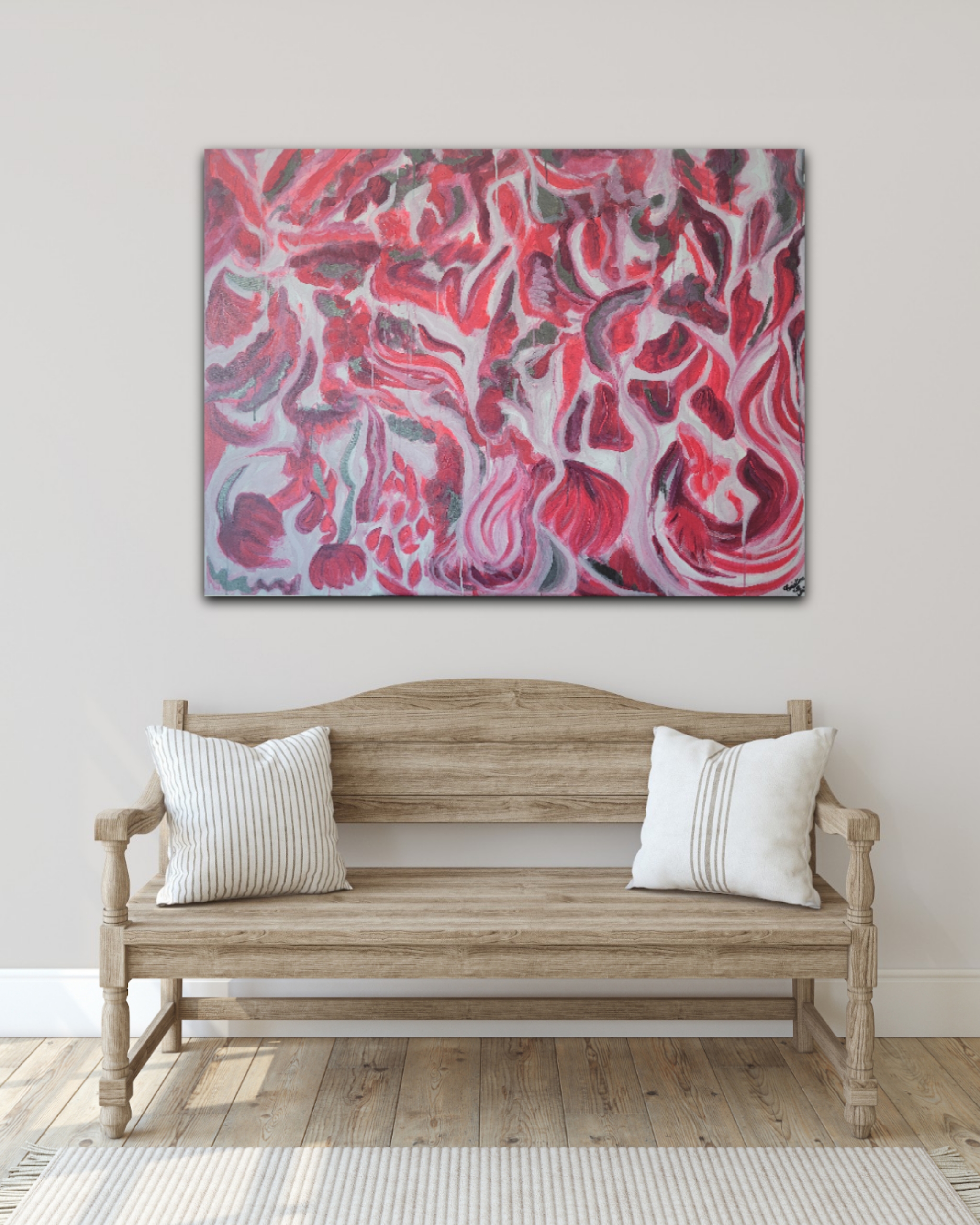 Original abstract acrylic painting made on a deep edge stretched canvas. The painting is fitted with wall hooks and is ready for hanging on your wall. Original artwork signed and dated by the artist. Certificate of authenticity provided.