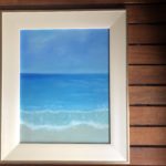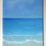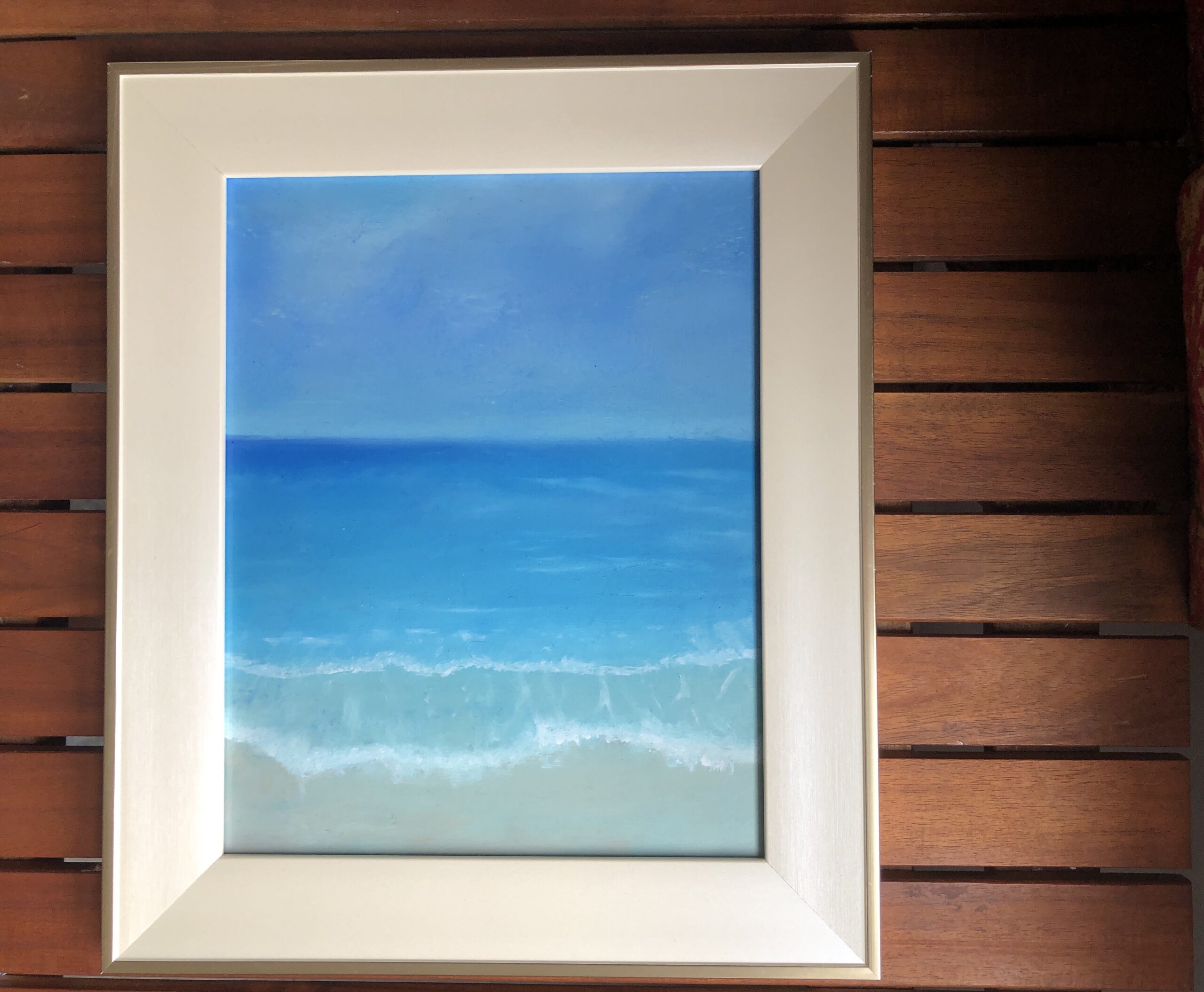 A small table top painting with oil on canvas paper ideal for bedroom dressing tables ,Study tables, living room wall floating stands Calm your stressed eyes by just a look at the calmness of the sea with those subtle waves