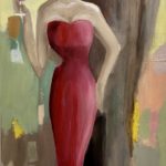 Vertical figurative abstract oil painting describes a couple who stands together in a prom.