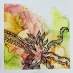 Coming from a South Asian ethnic background, oftentimes my mum sat me down to teach me the art of henna and traditional designs. As a kid who's always loved drawing colourful patterns, this greatly interested me due to the unique nature of such traditional designs. Thus henna art and its consequent traditional designs are a huge part of my culture and heritage. Through this artwork, I have tried incorporating this henna style with my passion for alcohol inks. Mixing the two art styles is something I have never tried but seems like a beautiful combination. The two art styles come together in this unique composition that brings a unique personal touch wherever this artwork is placed. It gives an essence of an explosion of all springtime colours as a backdrop against the unique henna style design.