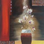 Acrylic still of a pot and oil paint mixed with flower.