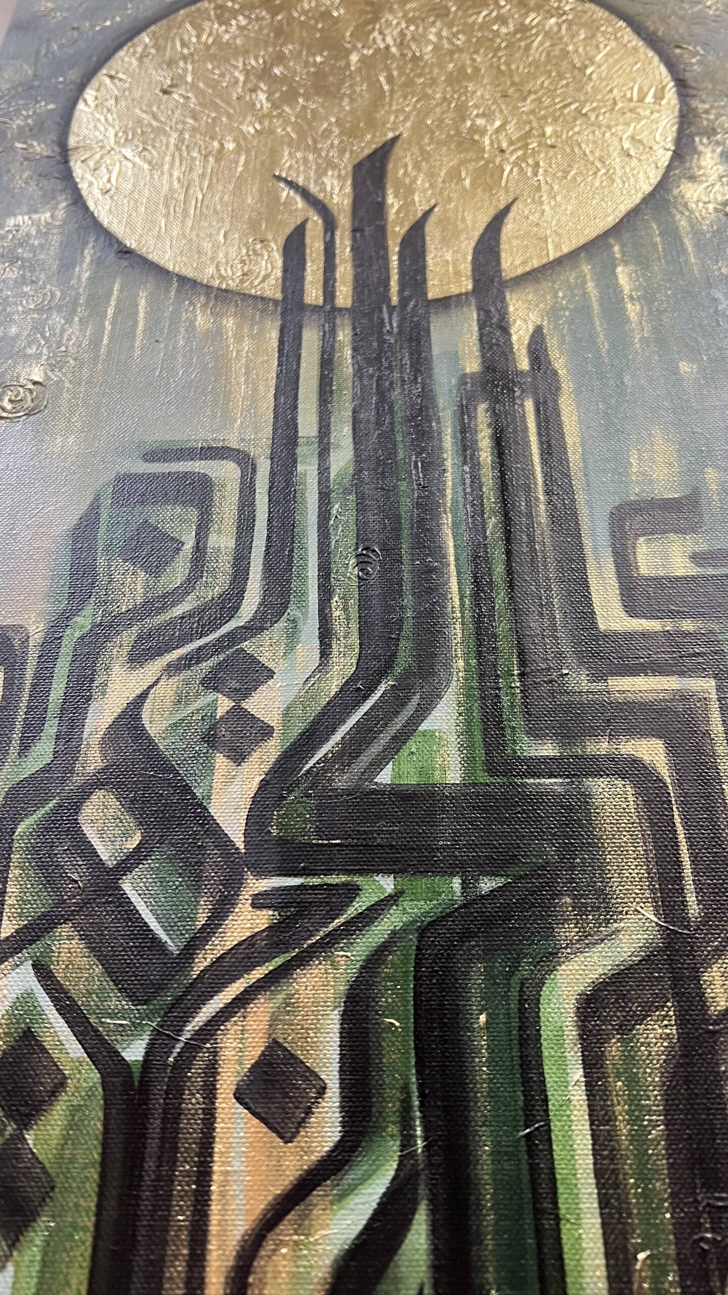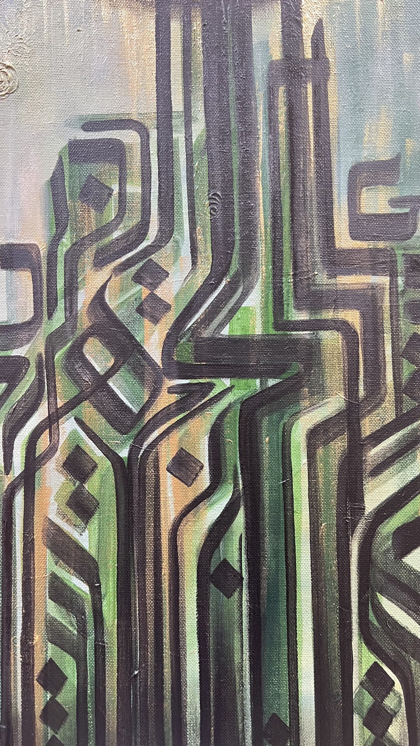 This beautiful painting is a modern composition of arabic calligraphy , showing strokes as struggle to reach towards a higher goal