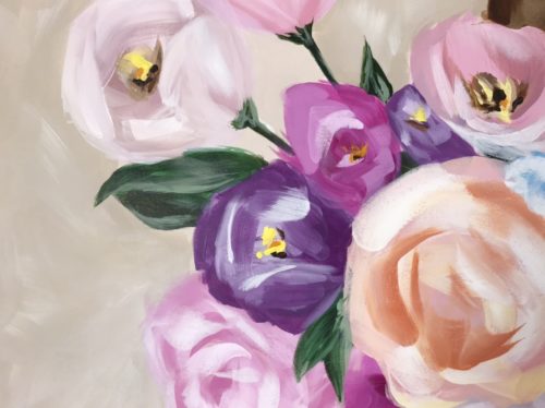 Abstract flowers, summer bouquet hand painted with acrylics on canvas. Ready to hang. One of a kind piece