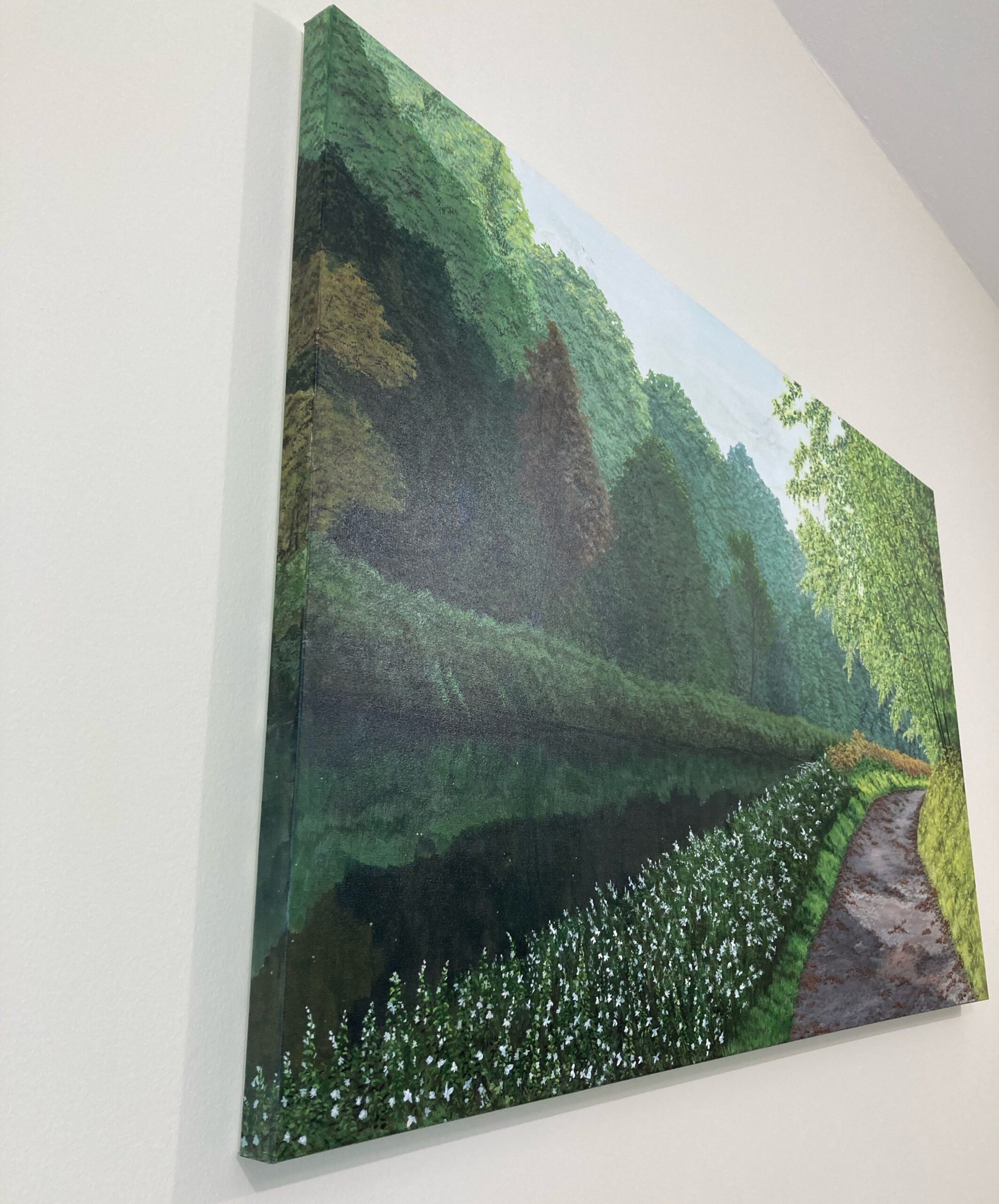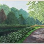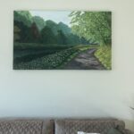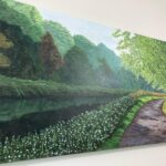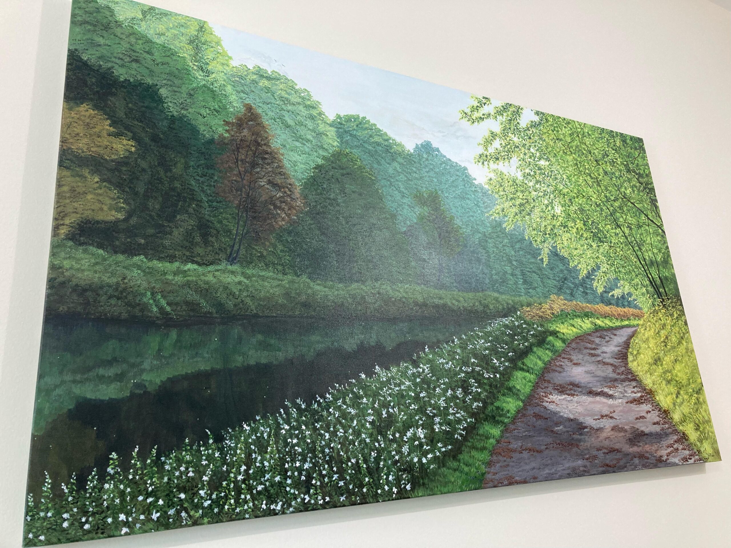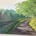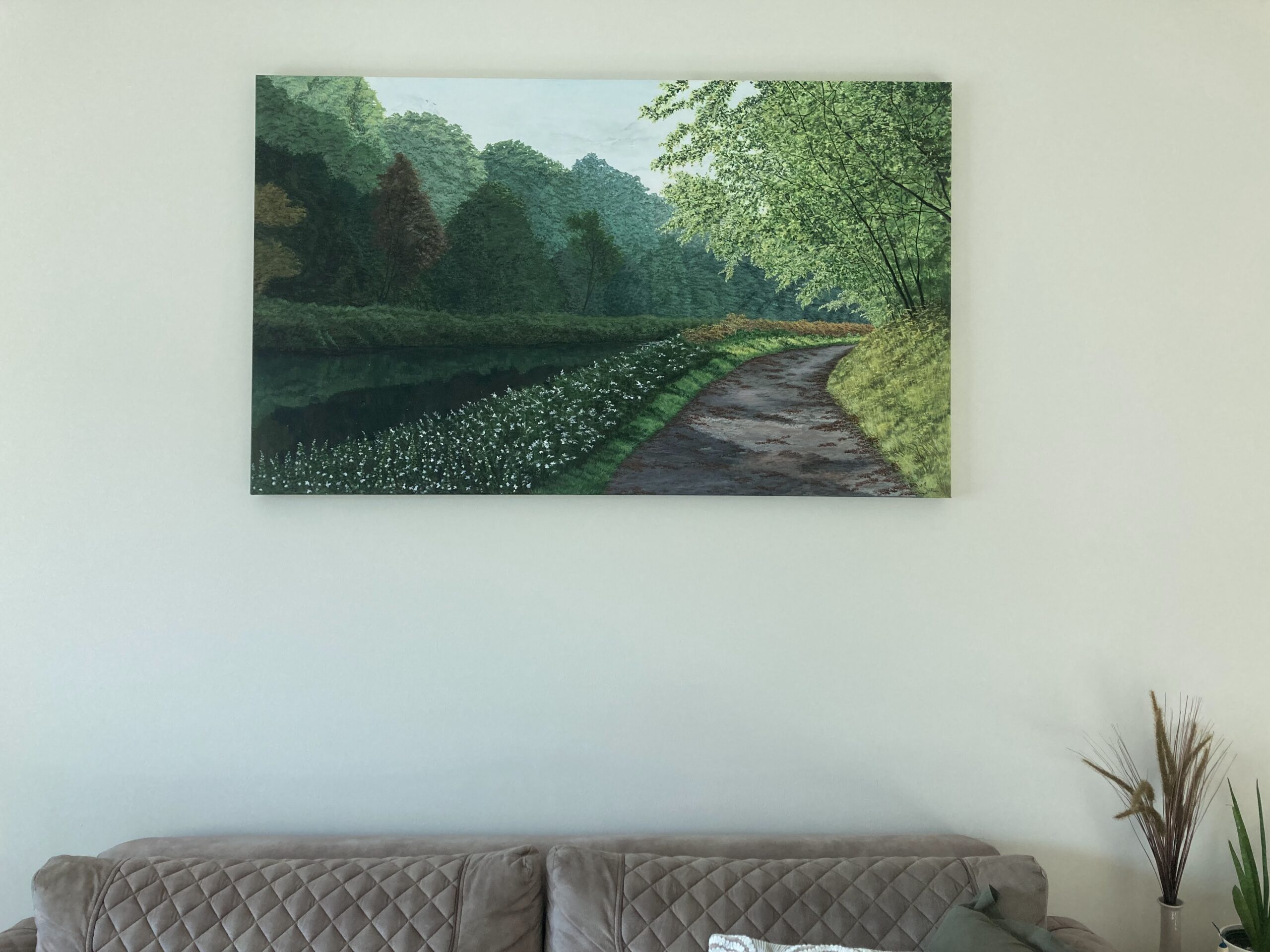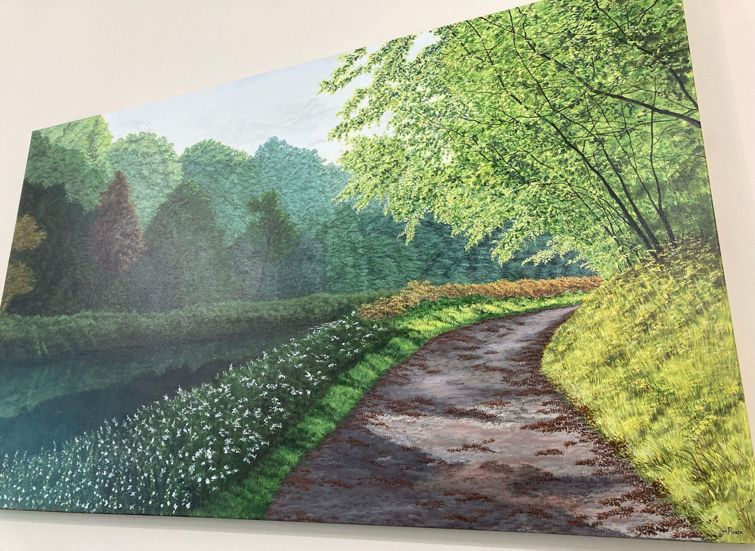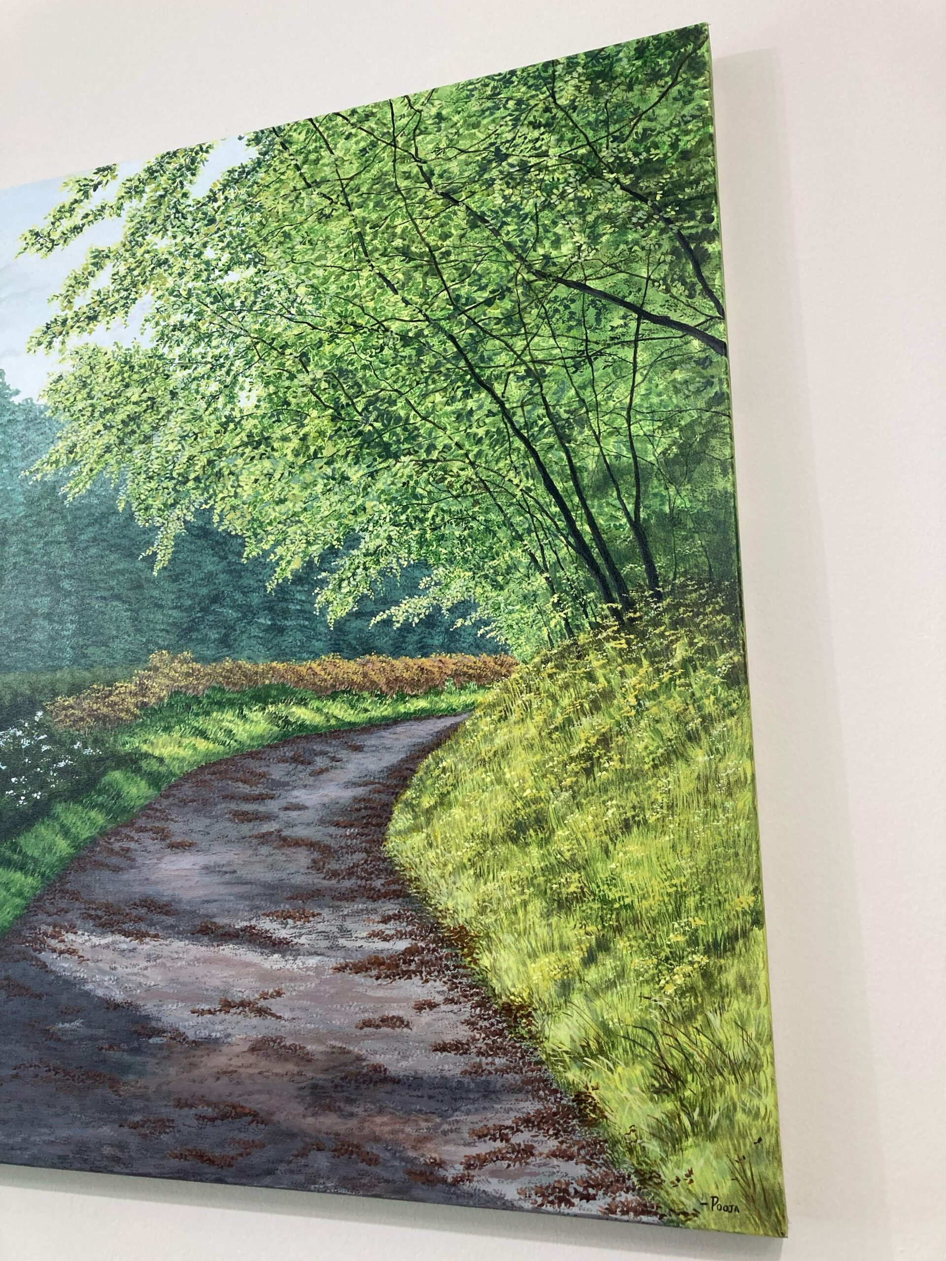 This acrylic painting portrays an idyllic summer day in the countryside with a lake and a path through the trees. It will add warmth , peace and vibrancy into your room and bring beauty of outside world indoors.