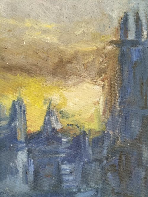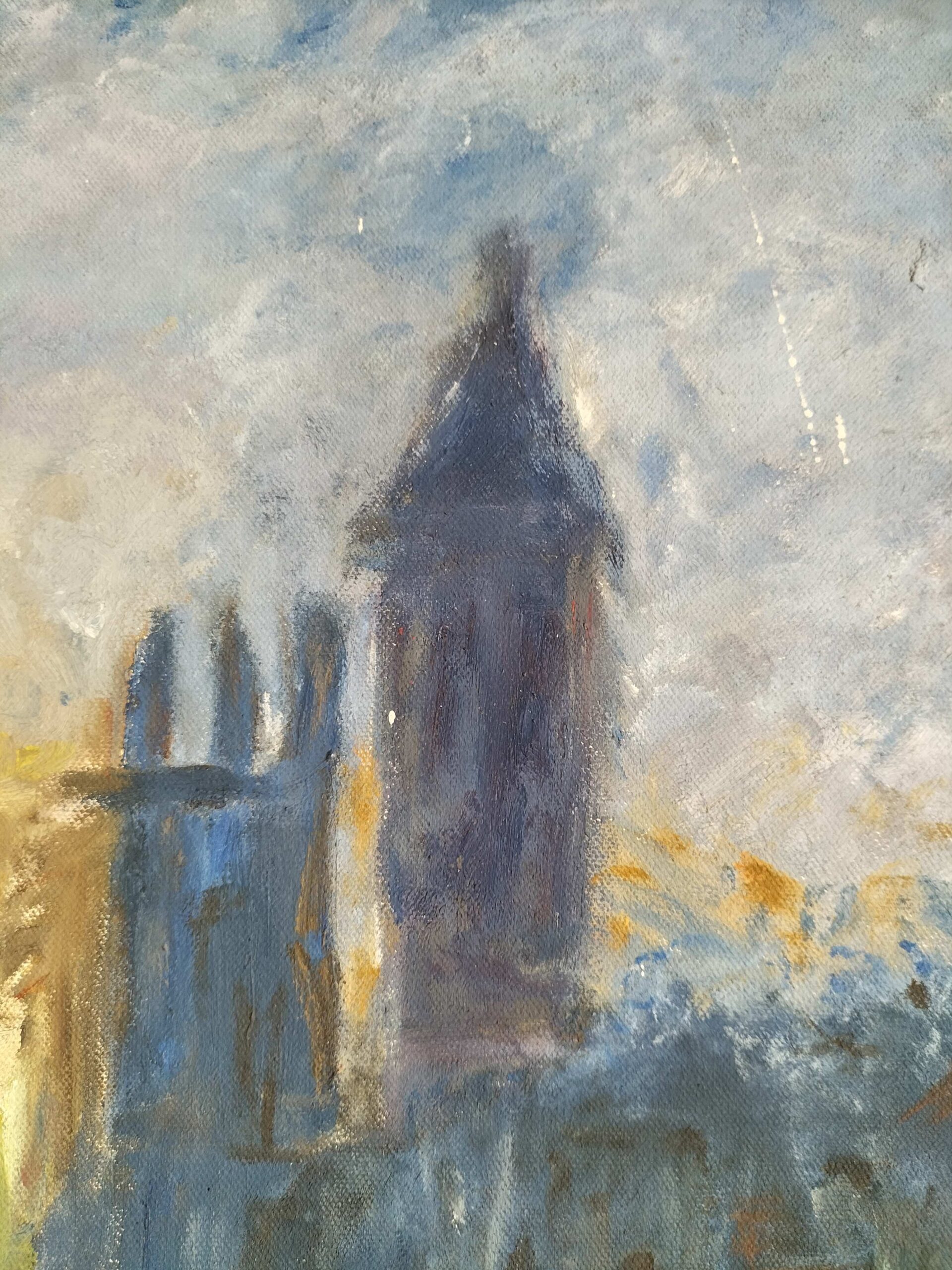 It's an unframed oil painting with thick textured paint with palette knife of a beautiful sunset scene of Thames river and parliament building London. It can be hanged horizontally and can be enjoyed in any interior space.