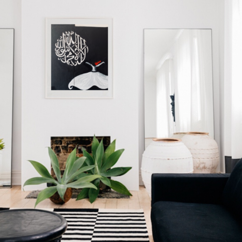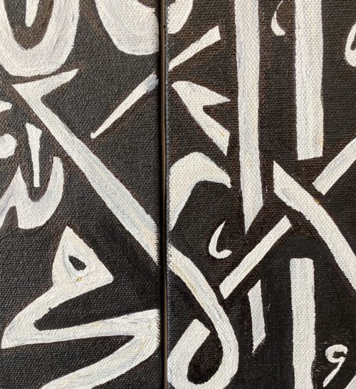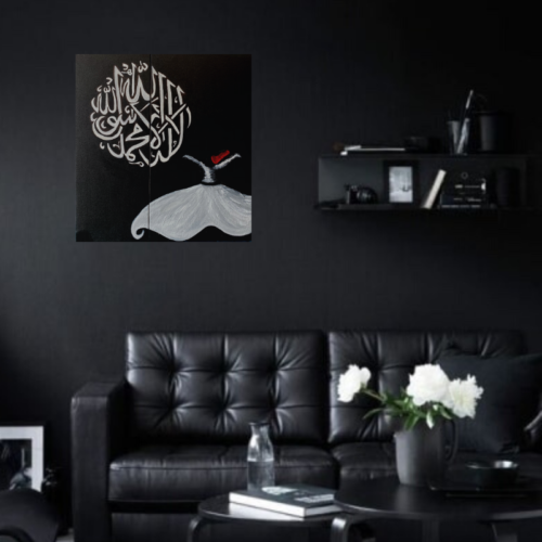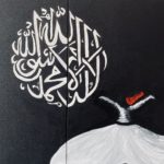 A Diptych Sufi and calligraphy painting depicting a Dervish seeking and wandering for eternal bliss. “The soul has been given its own ears to hear things mind does not understand” - Rumi
