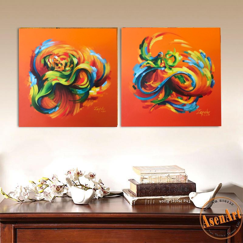 A beautiful abstract acrylic on canvas painting that depicts a folkloric Egyptian Tanoura dancer in a unique perspective