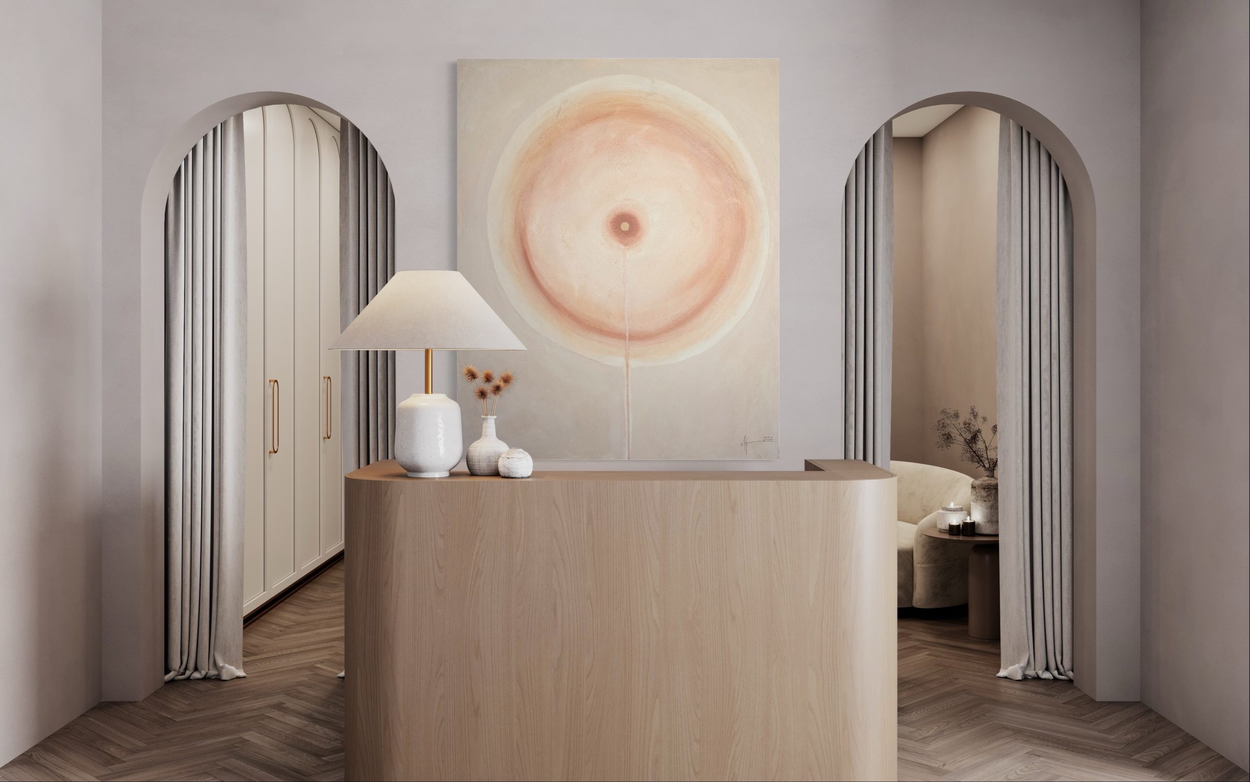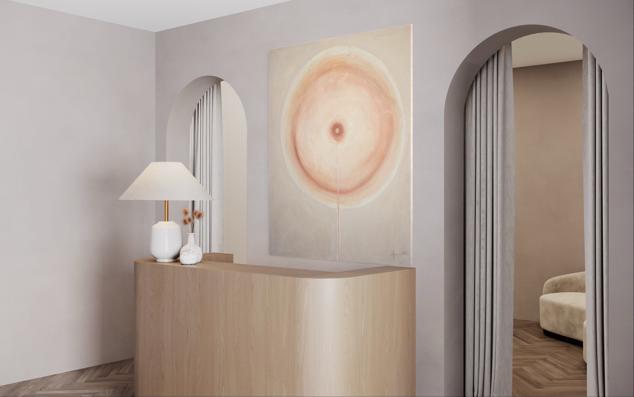Terra Solis - Land of the Sun, is a celebration of the warmth and life that radiates from the sun. Made from acrylic and sand, the surface of the painting reminds us the desert that we call home. This collection explores the simplicity of minimalism and symmetry, letting the warmth of the colours and subtle changes in texture make a statement that doesn't need to be shouted.
