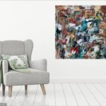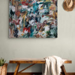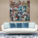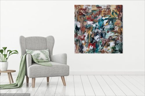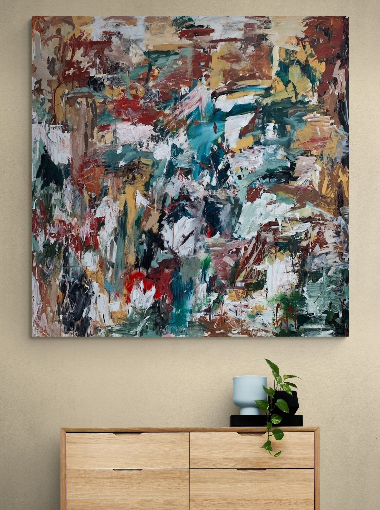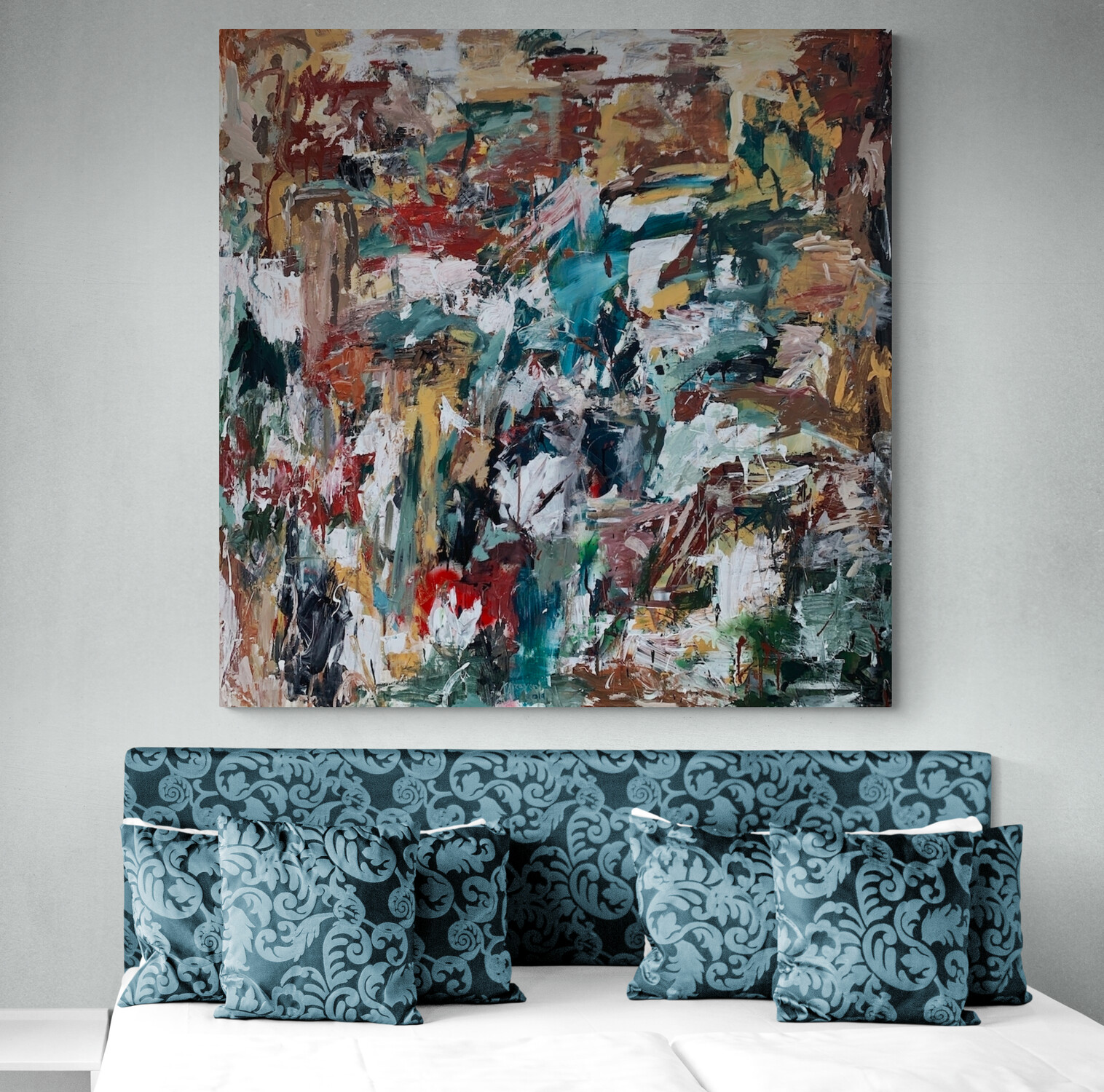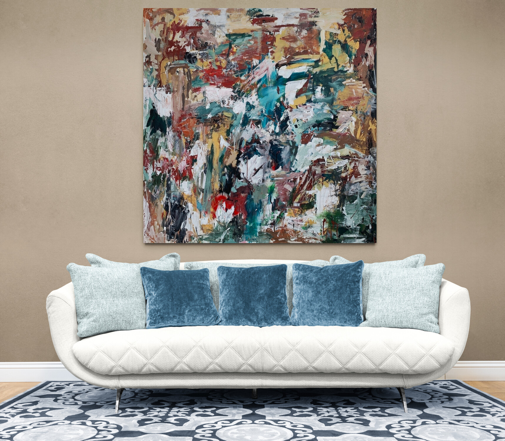 Artist statement: I started working on this painting without any intentions of how it is going to be. I started with only an idea of the color palette. But, this also has changed during the course of painting. I believe what really influenced the end result of this painting is the mood I was in and music I was listening to while working on it. I made this painting in June 2019. The medium is acrylic on canvas of size 48x48 inches. I signed it on the front. The stretched canvas is staple free sides, wired on the back and with no need for framing. It's ready to hang.