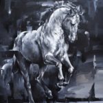 "THE FREE SPIRIT" The intent of this painting is to take advantage of the royal architecture to bring in the majestic phase of a horse were horse has been evolved over the past centuries from a small multi toed creature into a large single toed animal today. Horse has been used in warfare for most of recorded history. The horse with beauty unsurpassed, strength immeasurable and grace unlike any other, still remain humble enough to carry a man upon his back.