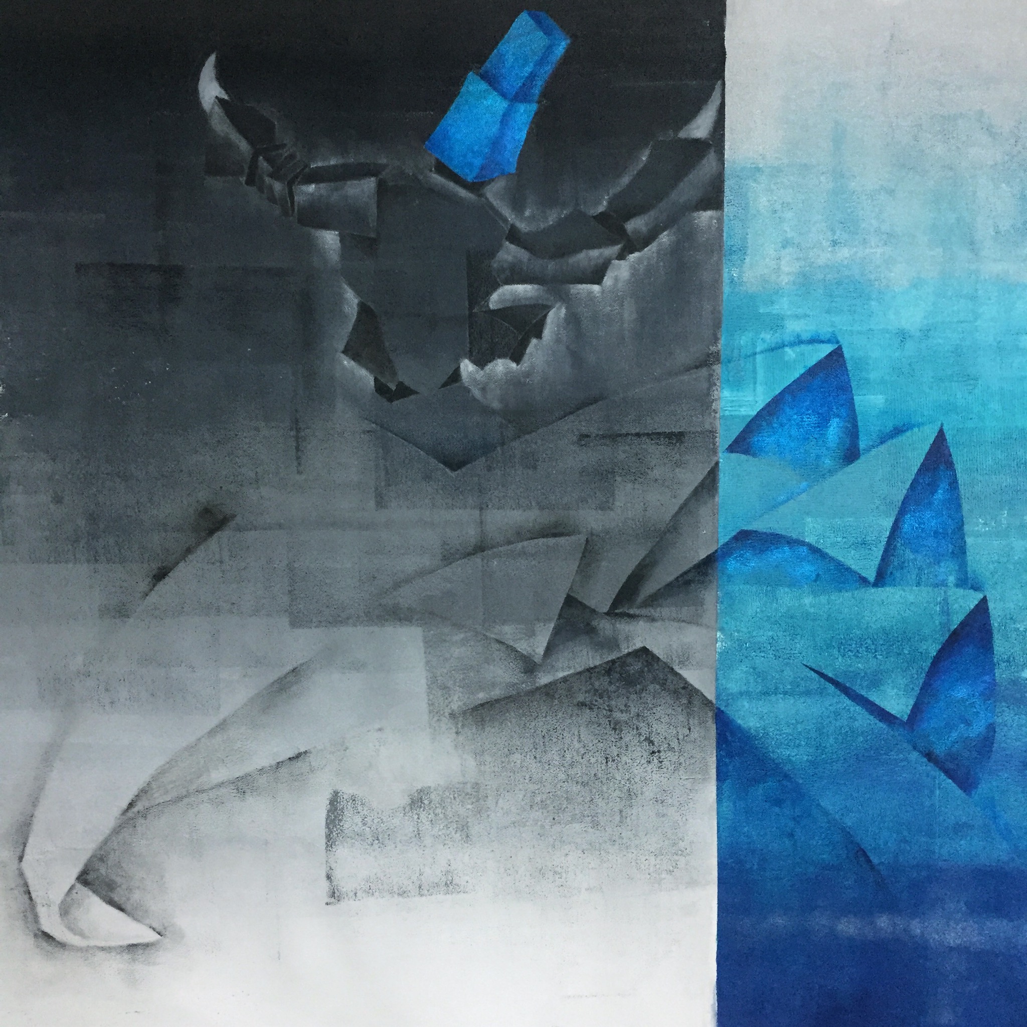 Part of my Search Within Series-SUFISM "the true realization of an individual’s identity lies in achieving a higher consciousness’. My Cubist artwork are offshoot of my Civil Engineering background. “In my Cubist artwork, objects are analyzed, broken up and reassembled in an abstracted form . ” Block wise construction of subject as if constructing a structure. It is a play of rhythmic movements and simplification of connecting forms. Conjoined artwork assembly. This system of artwork display consists of main artwork and a handmade customized background artwork, both having different shapes, overlapped to highlight the main artwork, and at the same time add additional real value to it. The cost of framing is replaced with the background artwork and hence customer gets better returns with time. This display is one of its kind. I have spent days at my studio and with a carpenter to get it assembled rightly.