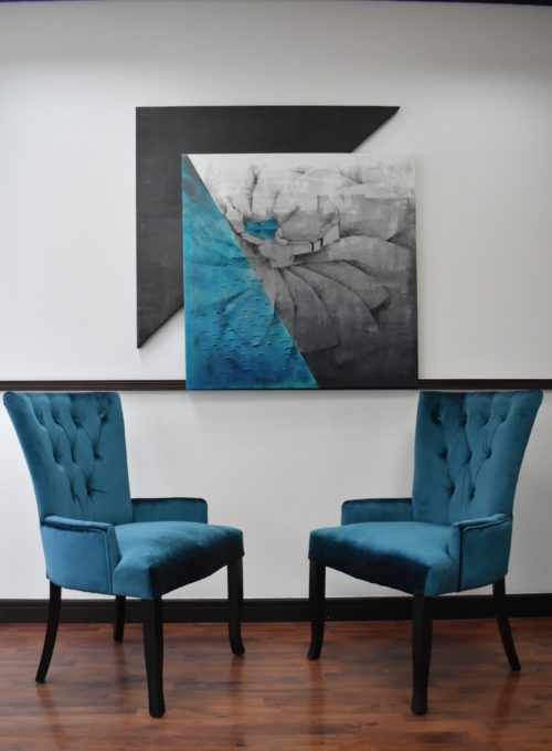 Part of my Search Within Series-SUFISM "the true realization of an individual’s identity lies in achieving a higher consciousness’. My Cubist artworks are offshoot of my Civil Engineering background. “In my Cubist artwork, objects are analyzed, broken up, and reassembled in an abstracted form. ” Block wise construction of subject as if constructing a structure. It is a play of rhythmic movements and simplification of connecting forms. Conjoined artwork assembly: This system of artwork displays consists of main artwork and handmade customized background artwork, both having different shapes, overlapped to highlight the main artwork, and at the same time add additional real value to it. The cost of framing is replaced with the background artwork and hence customer gets better returns with time. This display is one of its kind. I have spent days at my studio and with a carpenter to get it assembled rightly.