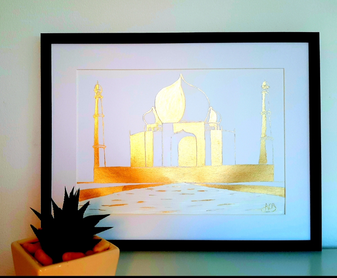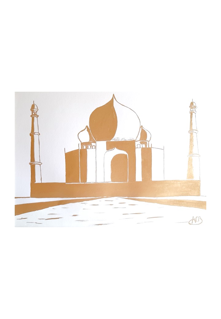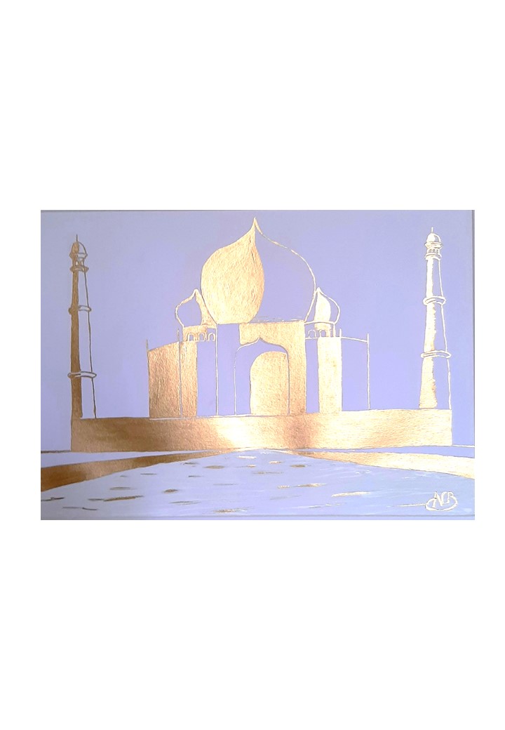 The Taj Mahal by Day is part of the very limited edition of 6, Hand painted with Oil Gold Metal paint, this work of art has an excellent reflections of lights and changes the colours of the artwork according to the time of the day. The colours of the work are inspired from the Grand Mosque in Abu Dhabi. Dubai and Abu Dhabi have for me the most beautiful night scenes with all the colourful lights and its unique buildings which are by themselves already a wonderful piece of art. This is why, as an Artist, I wanted to capture these striking architectures