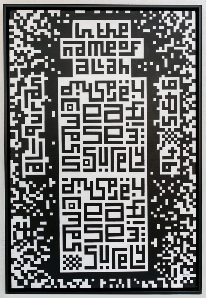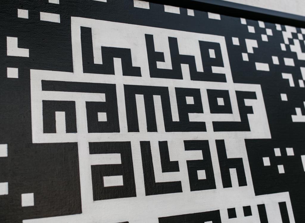 Calligraphy kufic english quran verse meaning islamic religious modern pixel