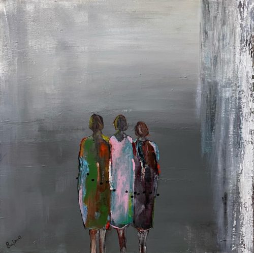 This painting is done on a 3d canvas using acrylic paints and pallet knife. It depicts the love of friends who are inseperable