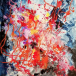 Acrylic Painting on paper. Its a beautiful combination of blue , red ,white, and black wall art in abstract style