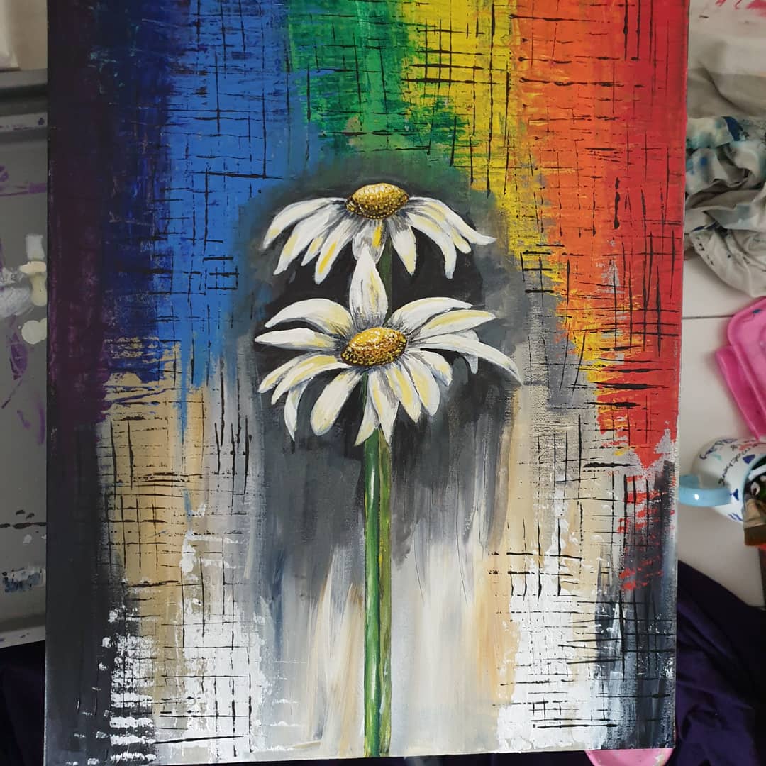 Acrylic painting with the colors of rainbow to keep us motivated as life throws many challenges but we have to fight and shine like a rainbow.