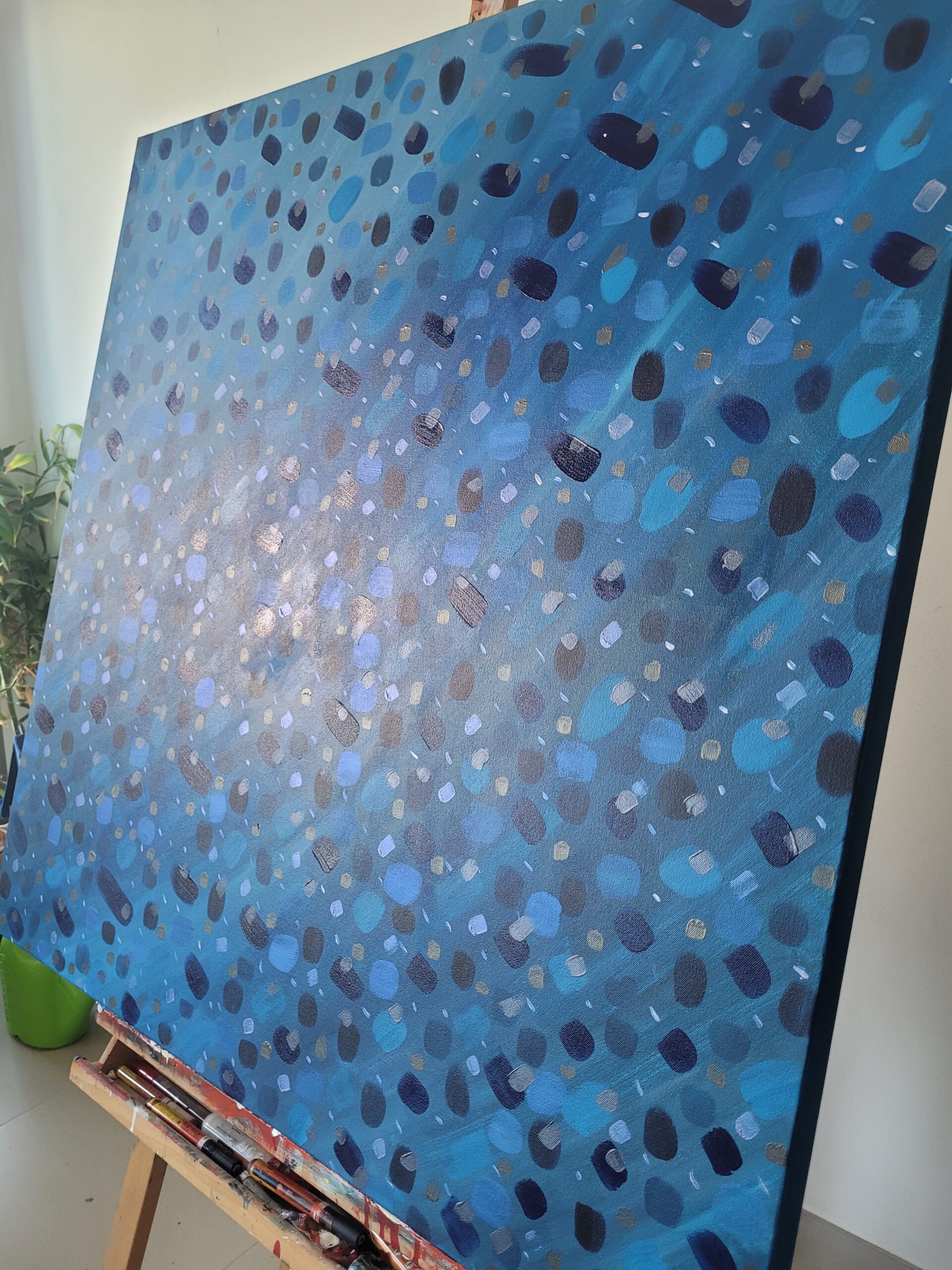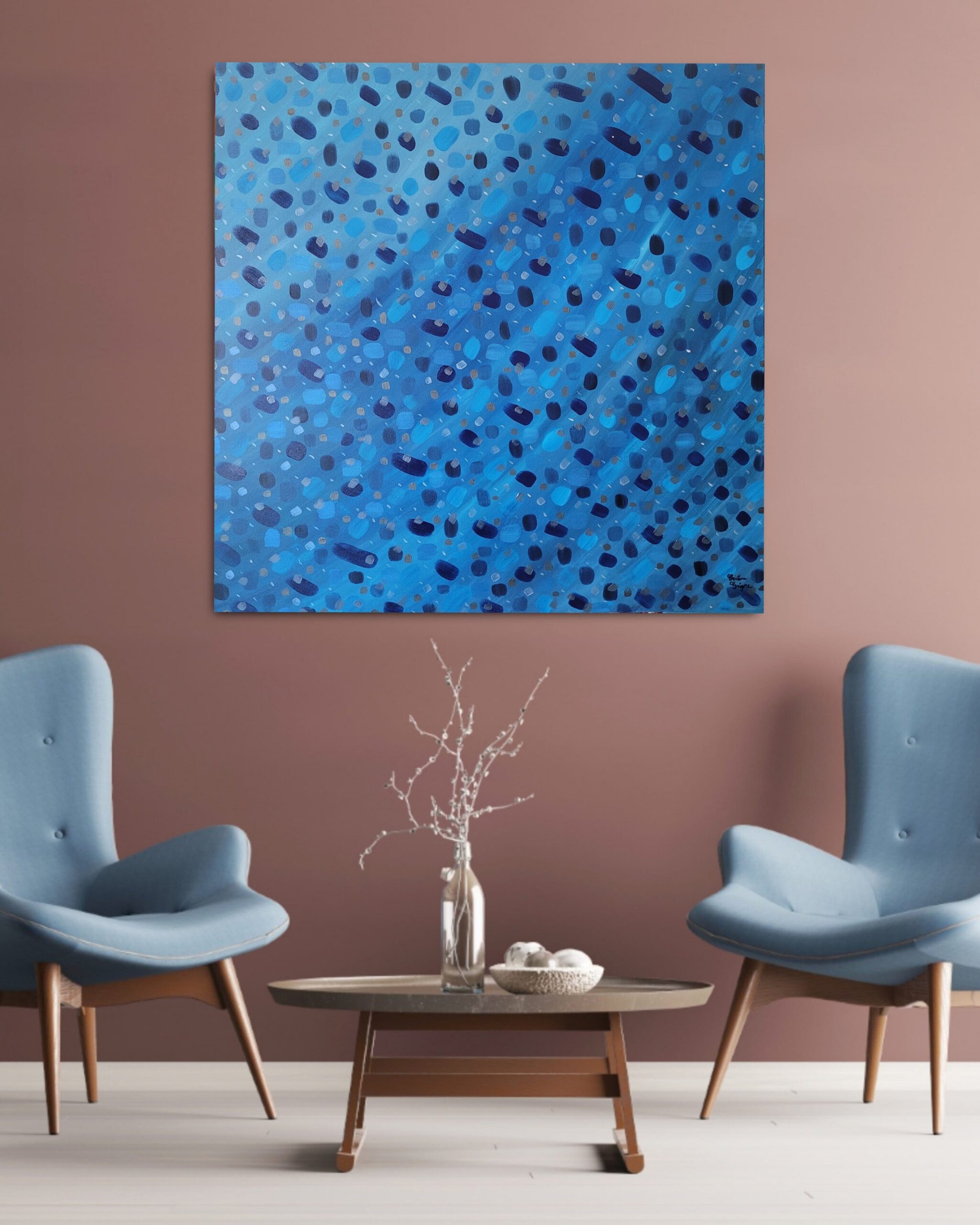 Original abstract acrylic painting made on a deep edge stretched canvas. The painting is fitted with wall hooks and is ready for hanging on your wall. Original artwork signed and dated by the artist. Certificate of authenticity provided.