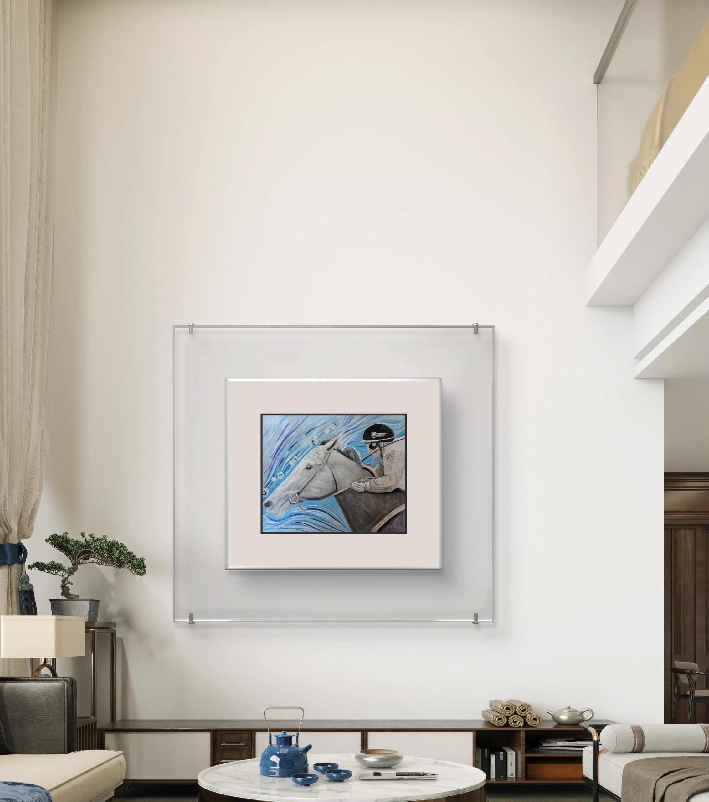 Experience the profound connection between horse and rider in "Unity," a captivating 67x54 cm artwork blending graphite and mixed media on paper. This piece illustrates the synchronized movement and shared strength of equestrian partners, embodying harmony and mutual trust. Perfect for equestrian enthusiasts, art collectors, or those seeking meaningful wall decor, "Unity" adds a touch of surreal elegance to any space. The intricate details and dynamic composition make it a standout piece in any art collection. Key Features: Original mixed media and graphite artwork Size: 67x54 cm Depicts the bond between horse and rider Ideal for equestrian decor and art collections