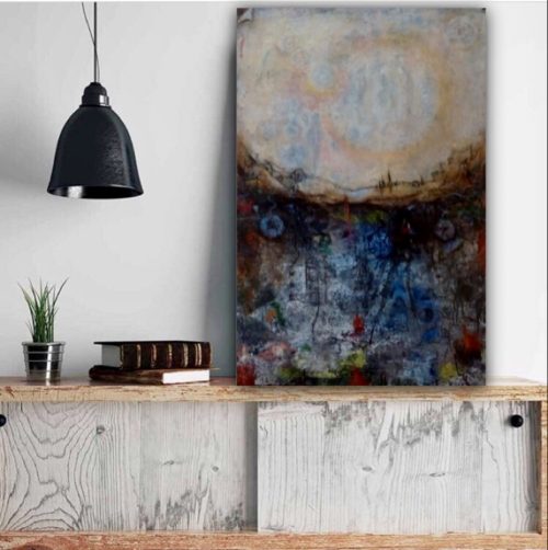 "Uptown & Downtown", 90x60, acrylics, charcoal, tempera, wax as medium, canvas Frame included By artist Tina D