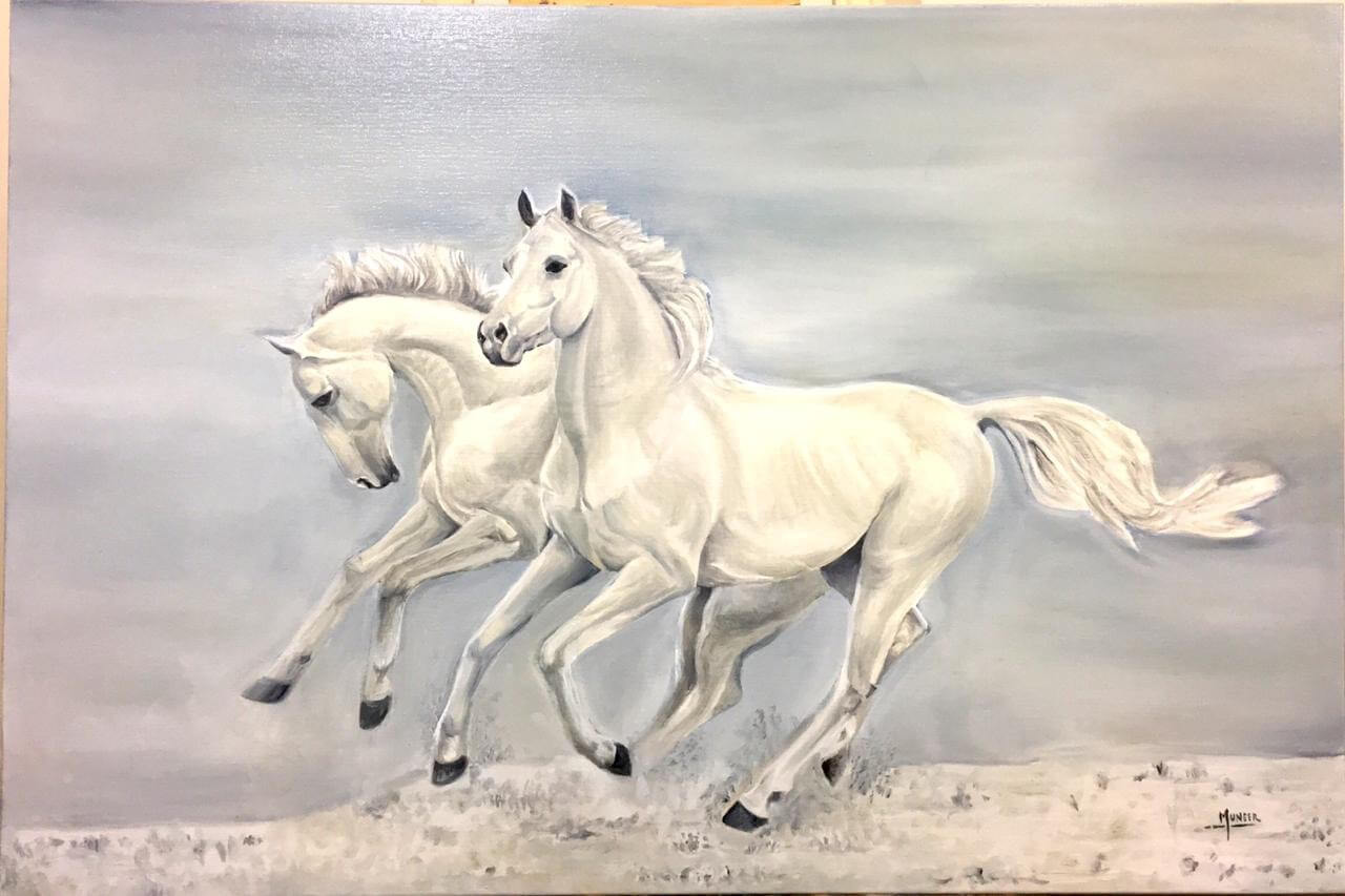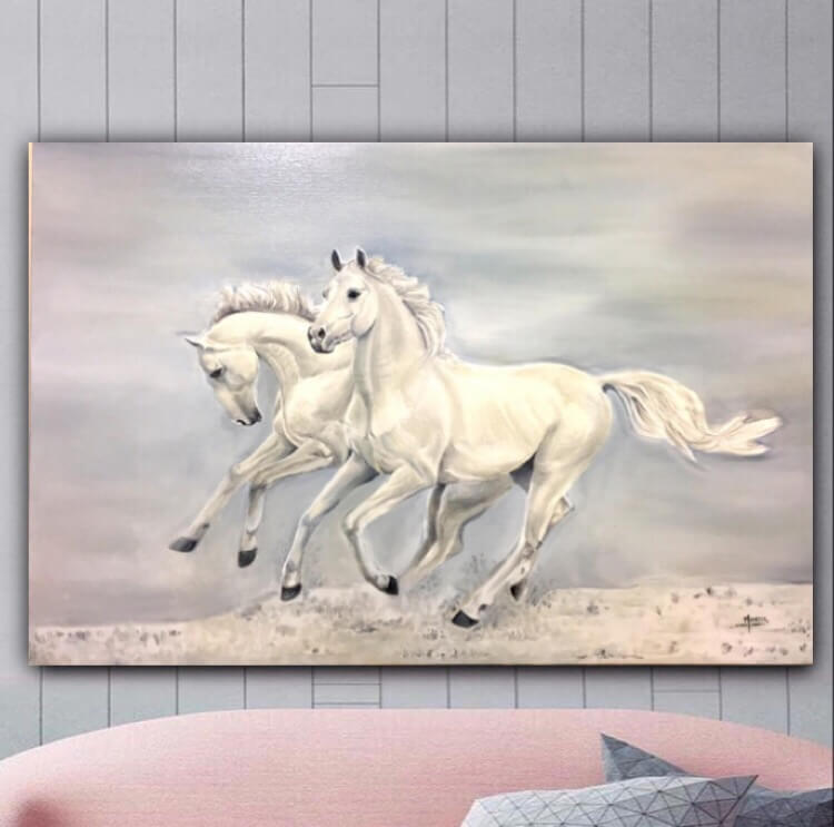 “White Horses “ Medium : oil painting Size : 90x60 cm Location : Dubai By artist Muneer