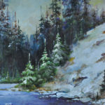 Oil painting on stretched canvas. The artwork reveals the beauty of Carpathian mountains surrounding the crystal clear lake during the first thaw. Landscape gives a feeling of the greatness and peace of the mountains and natural beaty and freshness of the forest with the touch of the first thaw. Original artwork by Ukrainian artist. Unframed.