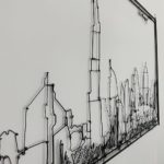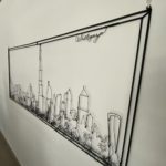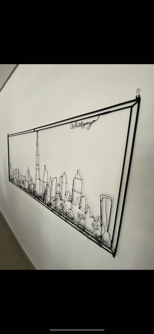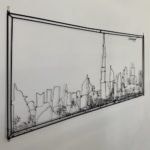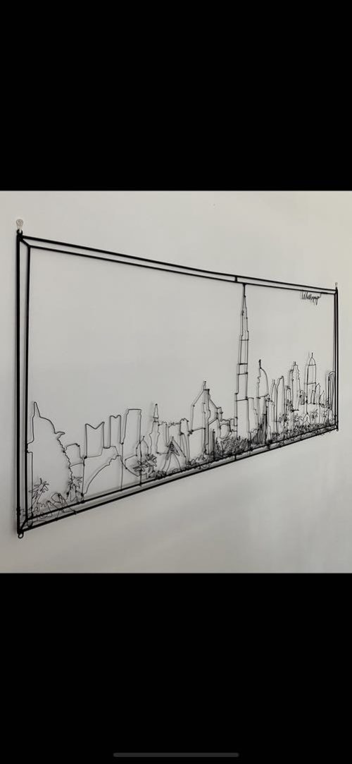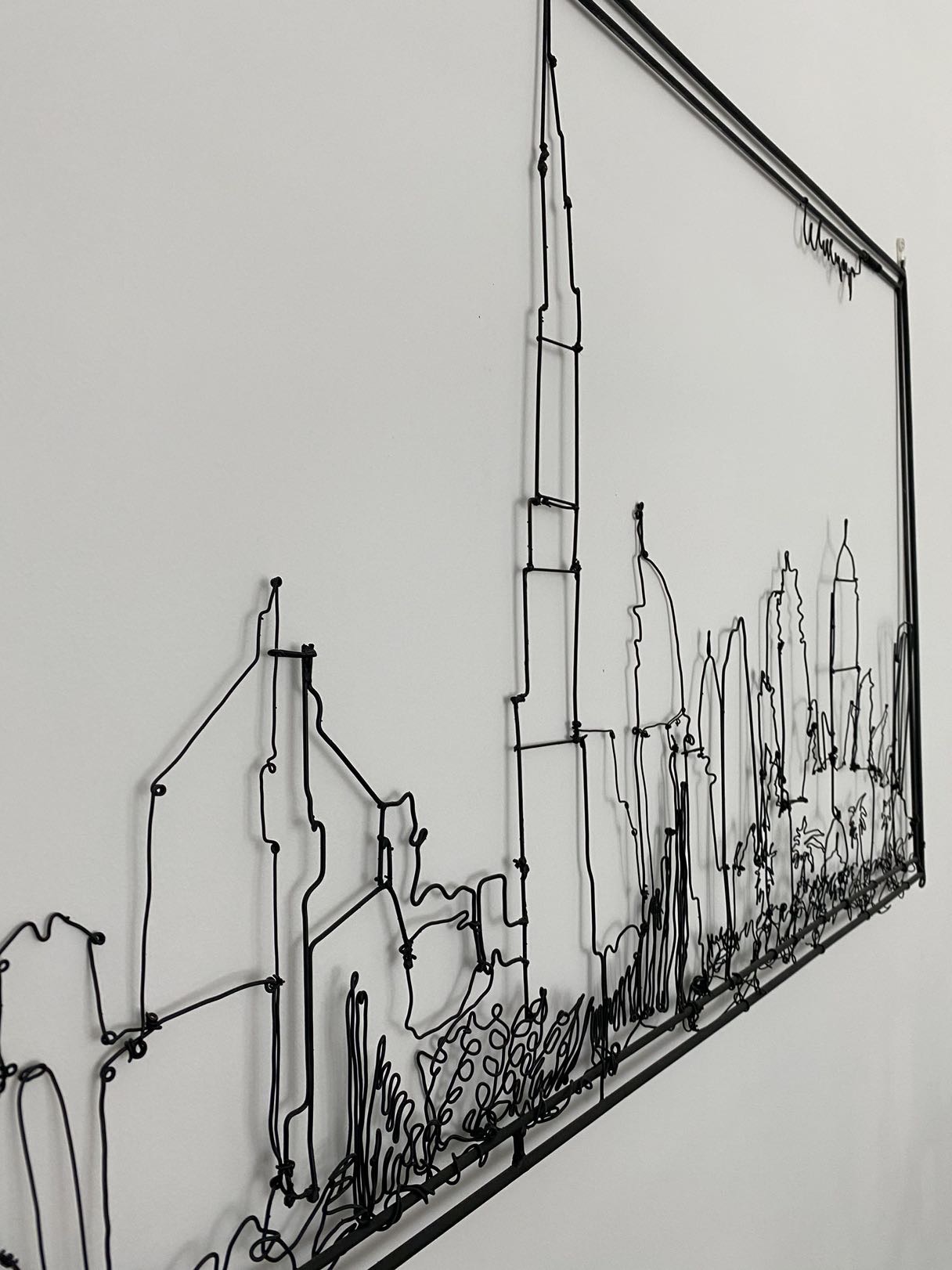 Commissioned, one of a kind wire Dubai skyline sculpture with sturdy two rod frame. A unique piece.