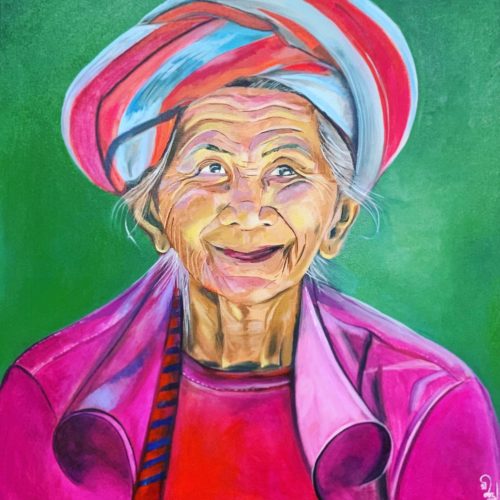 What is it to grow old? Is it to lose the glory of the form. Matthew Arnold, ‘Growing Old’ Beauty lies in the eyes of the beholder, accurately depicted in this painting. She has a wrinkled face, dark eyes and a lovely smile. In those wrinkled lines, she carries her experiences, her pain and her loneliness. Her wide smile makes us believe that no matter what happens.. smile and keep the worries of life at bay